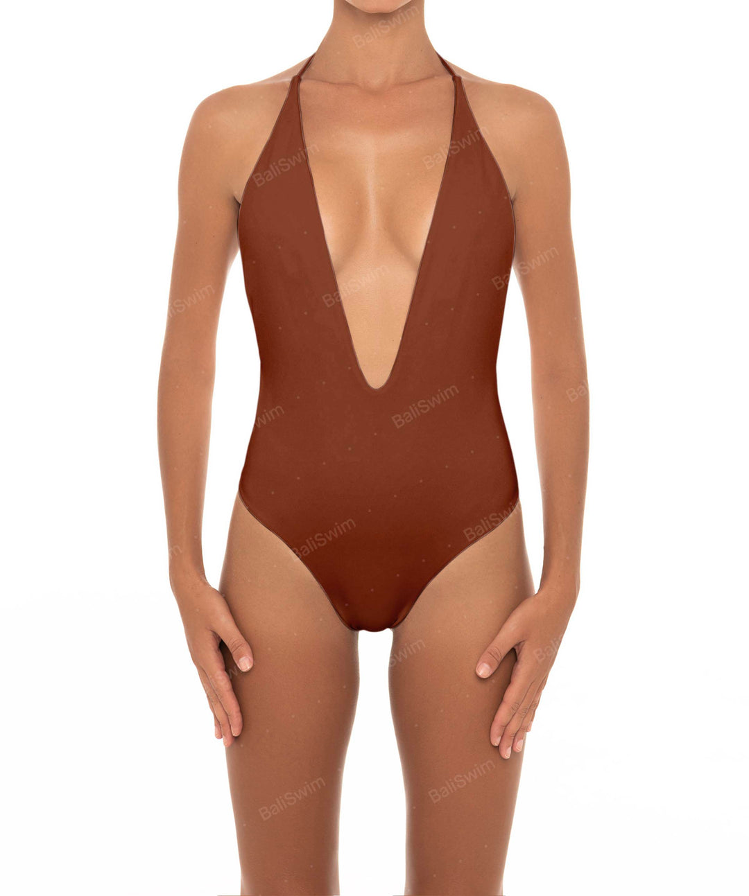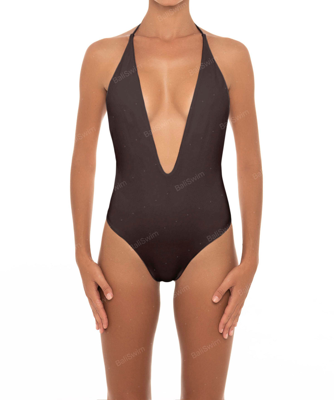 Plunge Neck Halter One Piece