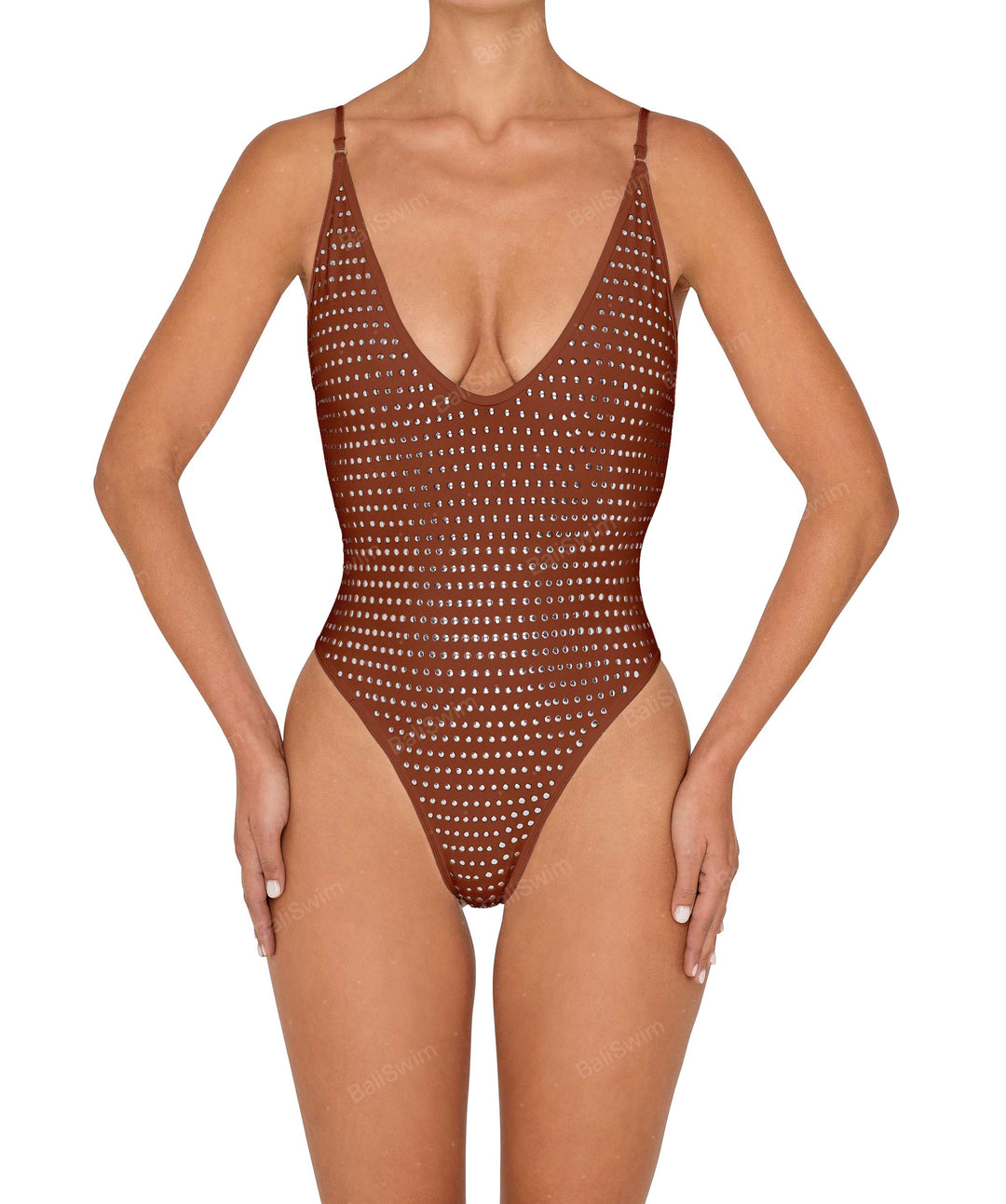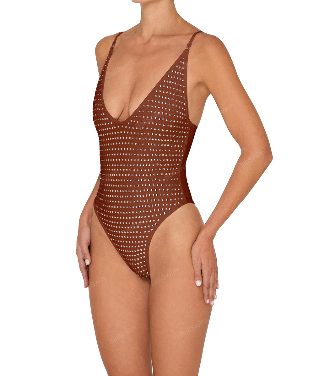 Studded Binded Plunge Neck One Piece