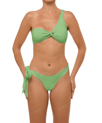 - Detail Feature: Asymmetric bikini top, Fixed shoulder strap, Front loop detail, Clasp closure