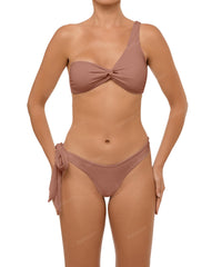 - Detail Feature: Asymmetric bikini top, Fixed shoulder strap, Front loop detail, Clasp closure
