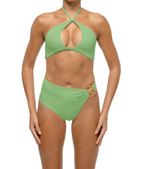 - Detail Feature: Halter bikini top, Bust cut-out detail, Twist detail, Pull on style