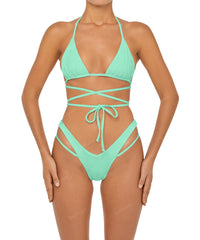 - Detail Feature: Triangle Bikini Top, Adjustable underbust, Halter ties, Adjustable wrap around straps detail