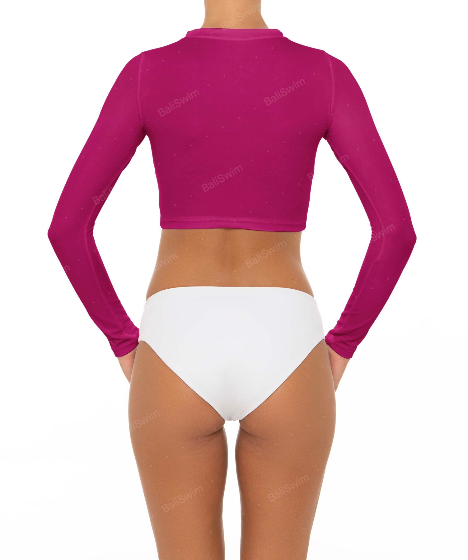 - Detail Feature: Cropped rash guard with long sleeves in a pull-on style