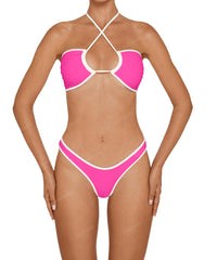 - Detail Feature: Bandeau Halter with binding edges, 8mm self tie halter, adjustable cup