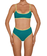 • Detail Feature: High waisted bottom with binding edges finishing, Hig cut leg opening