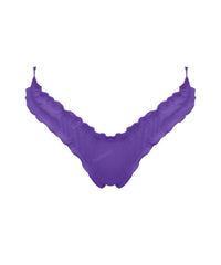 - Detail Feature: Lettuce hem bikini bottom, V-waist shape, Brazilian brief style, Low rise, High cut