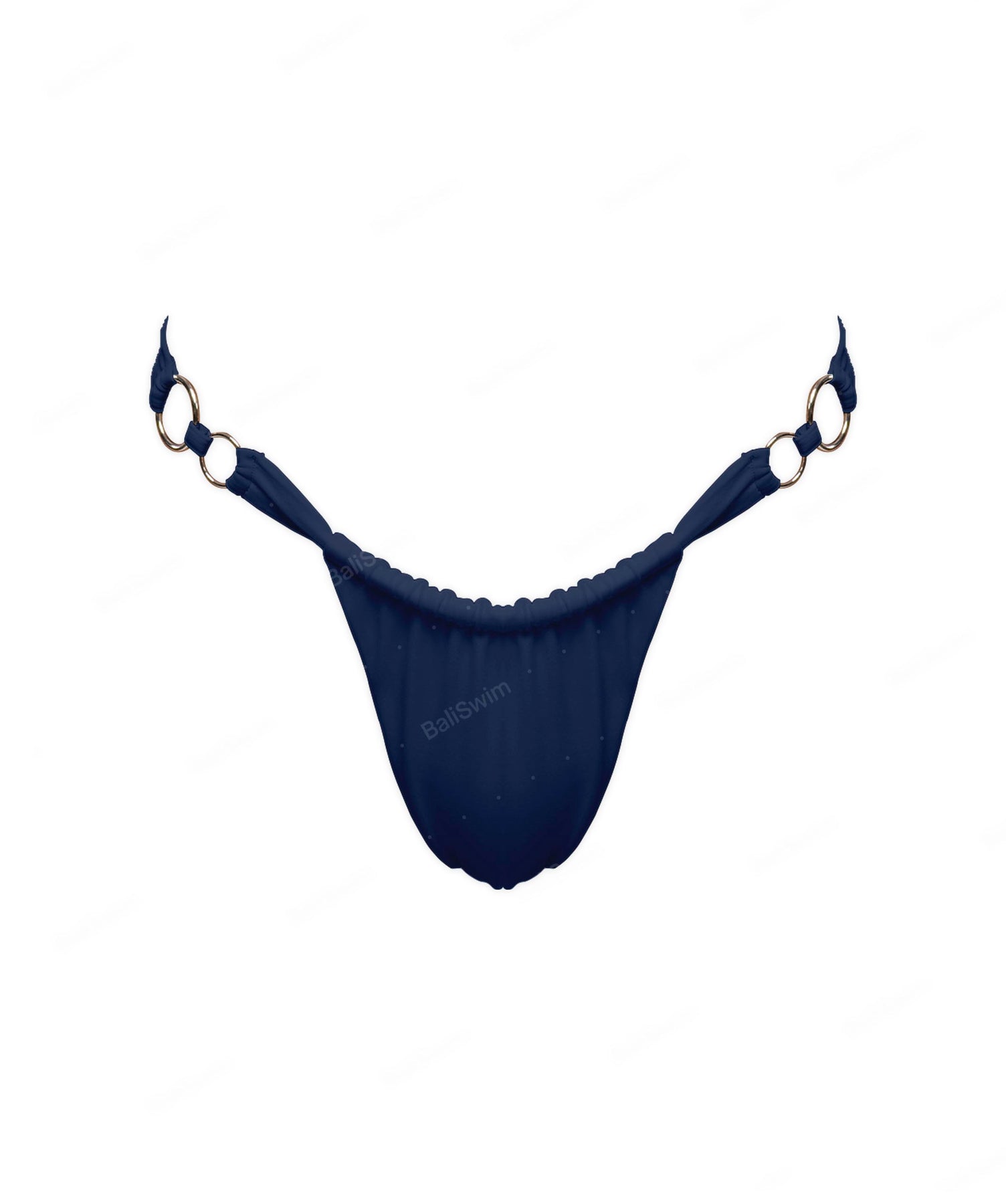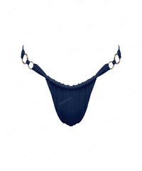• Detail Feature: Double rings bottom, Ruched detail, Adjustable front and bum coverage, Mid rise, High cut
