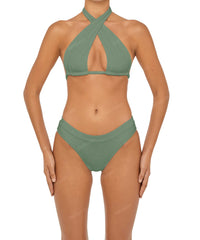 - Detail Feature: Mid rise bikini bottom, Waistband detail