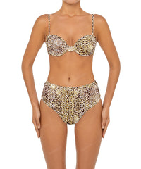 - Detail Feature: High rise bikini bottom, Waistband detail