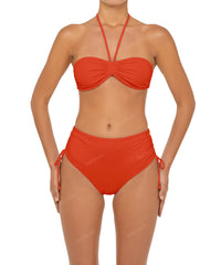 - Detail Feature: High rise bikini bottom, Adjustable leg opening option, Side ruched drawstrings detail, Hidden elastic band