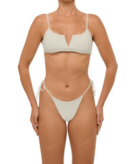 - Detail Feature: Side tie bikini bottom, Adjustable thin straps closure, Mid Rise, High Cut, Brazilian Style