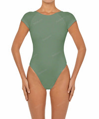 - Detail Feature: Short sleeves one piece, Raglan sleeves, Back tie closure, Low back