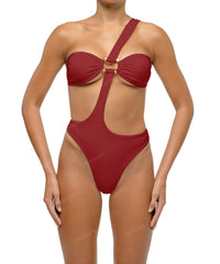 - Detail Feature: One shoulder detail, Wave ring detail, Front and back cut-out, High cut, Clasp closure