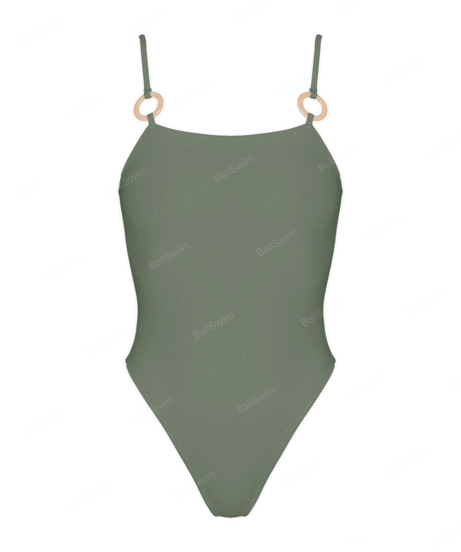 - Detail Feature: Straight neckline one piece, with resin ring details, high leg cut, seamless finishing, option fix straps/ adjustable