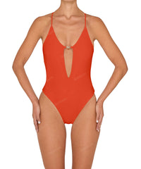 - Detail Feature: Cut-out one piece with custom hardware connector detail, high cut leg opening, adjustable straps