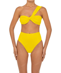 - Detail Feature: One shoulder bandeau bikini top, Ruched detail, Clasp closure