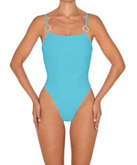 - Detail Feature: Straight neckline one piece, with resin ring details, high leg cut, seamless finishing, option fix straps/ adjustable