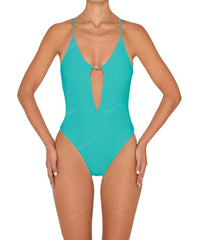 - Detail Feature: Cut-out one piece with custom hardware connector detail, high cut leg opening, adjustable straps