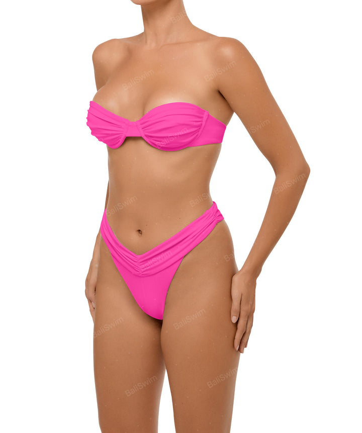 - Detail Feature: Ruched v-waist on side, Low rise, High cut, Brazillian style