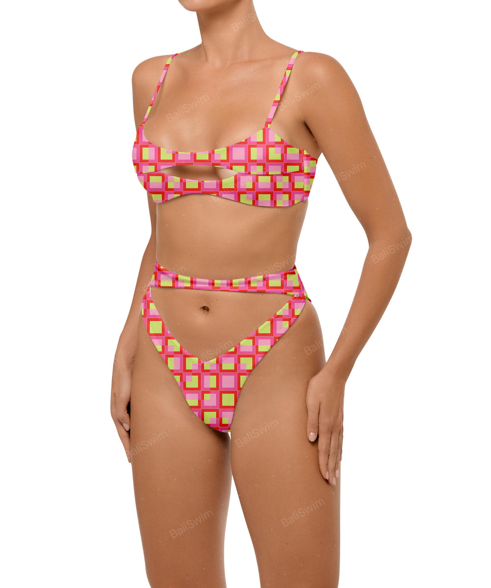 - Detail Feature: Hip cut out bikini bottom, High Rise, High cut