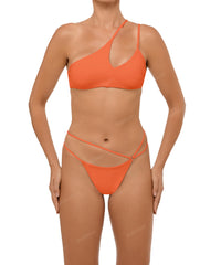 - Detail Feature: Asymmetric straps bikini bottom, O-ring detail, Low rise, Brazillian style