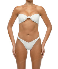 - Detail Feature: V-waist bikini top, Front Knotted detail, Mid rise, High cut