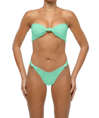- Detail Feature: V-waist bikini top, Front Knotted detail, Mid rise, High cut