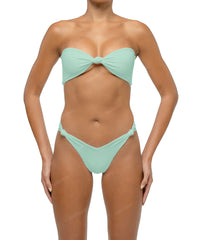 - Detail Feature: V-waist bikini top, Front Knotted detail, Mid rise, High cut