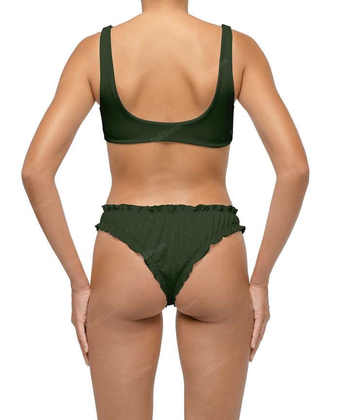 - Detail Feature: Lettuce hem bikini bottom, V-waist shape, Brazilian brief style, Low rise, High cut