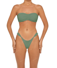 - Detail Feature: Low rise bikini bottom, Ruffle detail, High cut