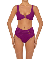 - Detail Feature: High rise bikini bottom, Waist overlay with O-Ring, Ruched detail
