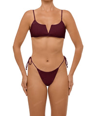 - Detail Feature: Side tie bikini bottom, Adjustable thin straps closure, Mid Rise, High Cut, Brazilian Style