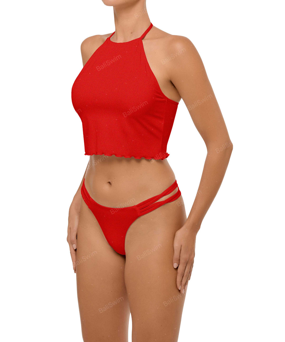 - Detail Feature: Criss cross straps bikini bottom, Mid rise, Brazillian style