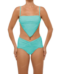 - Detail Feature: High rise bikini bottom, Ruched detail, Wide sideseam, Brief style