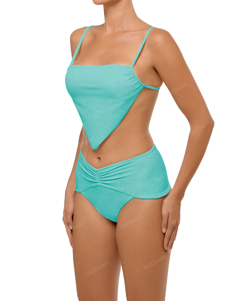 - Style: Ruched High Rise Bikini Bottom