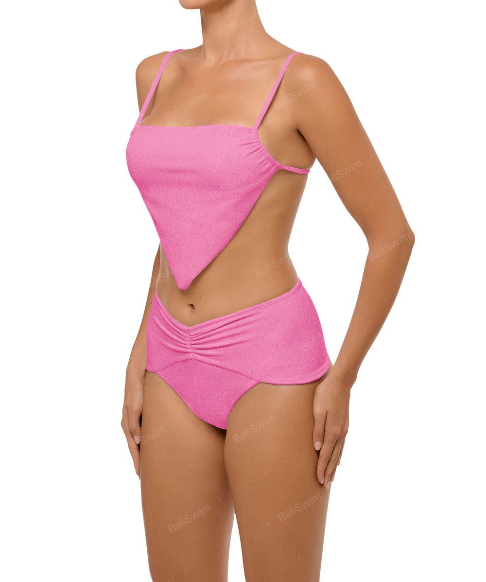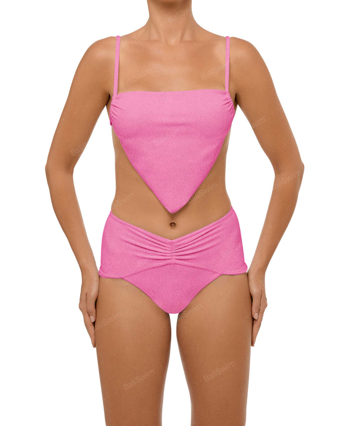 - Detail Feature: High rise bikini bottom, Ruched detail, Wide sideseam, Brief style