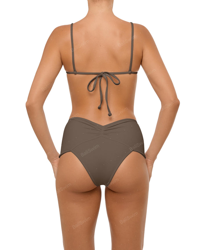 - Style: Ruched High Rise Bikini Bottom
