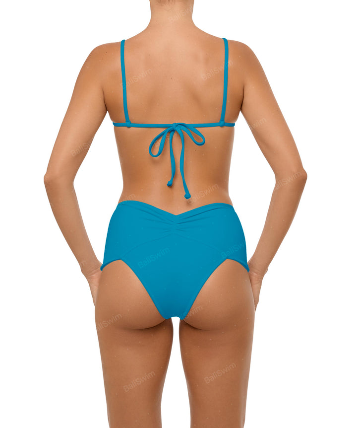 - Detail Feature: High rise bikini bottom, Ruched detail, Wide sideseam, Brief style