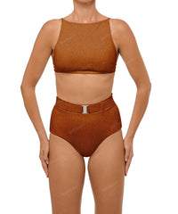 - Detail Feature: High rise bikini bottom, Detachable belt, Belt loops on waistband