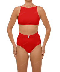 - Detail Feature: High rise bikini bottom, Detachable belt, Belt loops on waistband