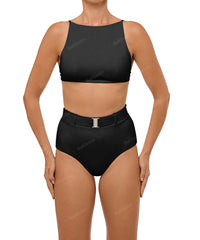 - Detail Feature: High rise bikini bottom, Detachable belt, Belt loops on waistband