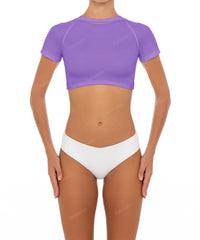 - Detail Feature: Cropped raglan rash guard with short sleeves in a pull-on style