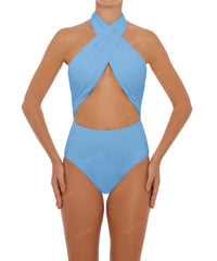 - Detail Feature: Halter criss cross one piece, Adjustable halter ties, Low back