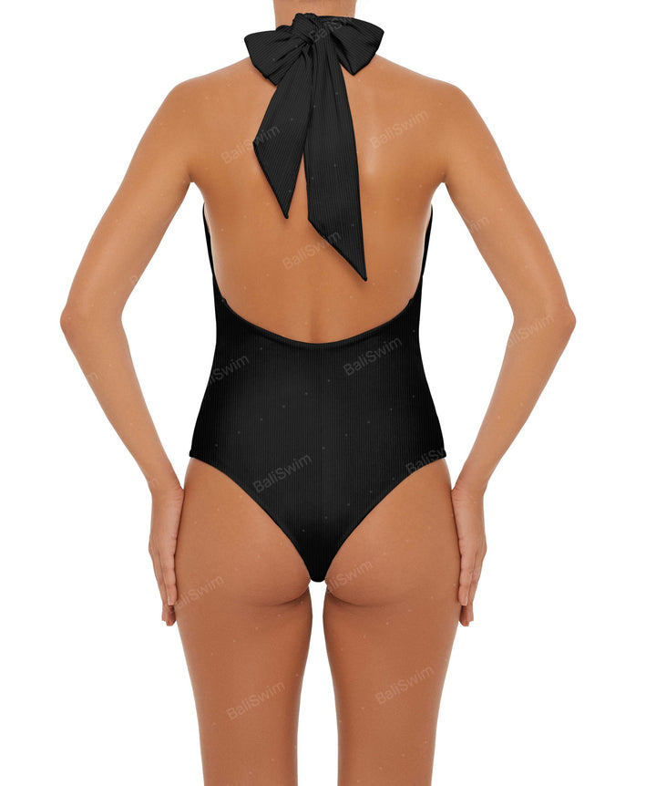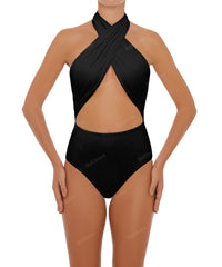 - Detail Feature: Halter criss cross one piece, Adjustable halter ties, Low back