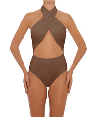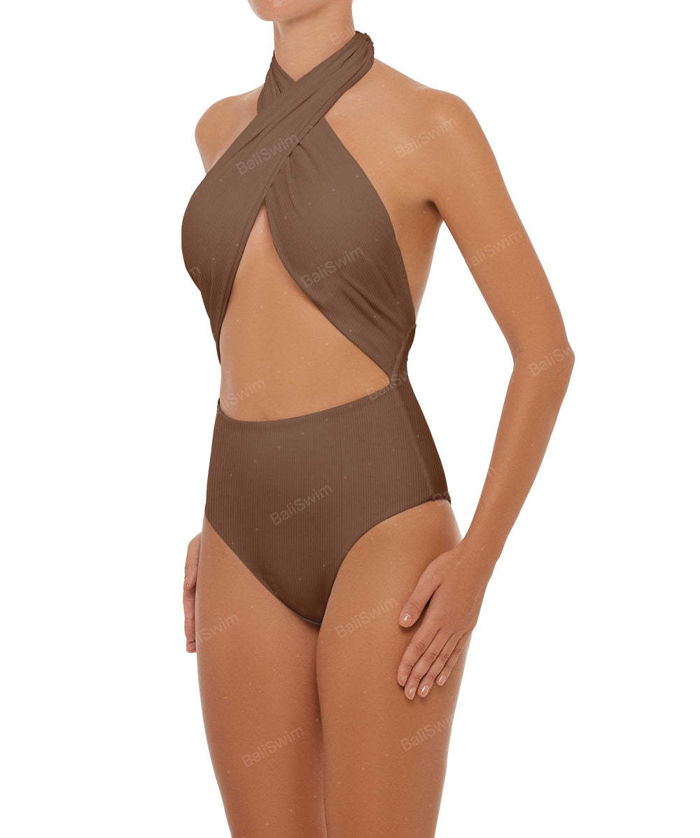 - Detail Feature: Halter criss cross one piece, Adjustable halter ties, Low back