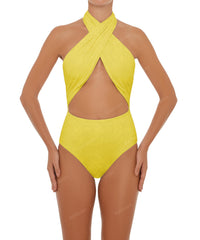 - Detail Feature: Halter criss cross one piece, Adjustable halter ties, Low back
