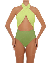 - Detail Feature: Halter criss cross one piece, Adjustable halter ties, Low back