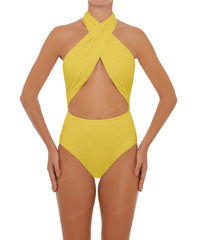 - Detail Feature: Halter criss cross one piece, Adjustable halter ties, Low back
