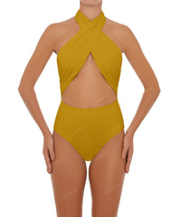 - Detail Feature: Halter criss cross one piece, Adjustable halter ties, Low back
