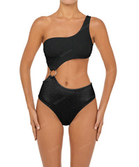 - Detail Feature: One shoulder swimsuit, Connecting O-ring detail, Cut out detail, High rise